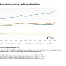 Psychische Erkrankungen sind immer häufiger die Ursache für Krankschreibungen von Arbeitnehmern. Auch 2012 stiegen sowohl der Anteil der Krankschreibungen (AU-Fälle) als auch der Anteil der betrieblichen Fehltage (AU-Tage), der psychisch bedingt ist. Der Anteil der AU-Tage hat sich von 2000 bis 2012 fast verdoppelt (plus 96 Prozent). Inzwischen gehen knapp 14 Prozent aller betrieblichen Fehltage auf psychische Erkrankungen zurück. Diese Zunahme ist vor allem auf die immer längere Dauer der Krankschreibungen zurückzuführen. 2012 fehlte ein psychisch erkrankter Arbeitnehmer durchschnittlich 34 Tage. Insgesamt fehlten 2012 Arbeitnehmer über 80 Millionen Tage in ihren Betrieben. Psychische Erkrankungen sind damit der zweithäufigste Grund für Arbeitsunfähigkeit nach Muskel-Skelett-Erkrankungen.